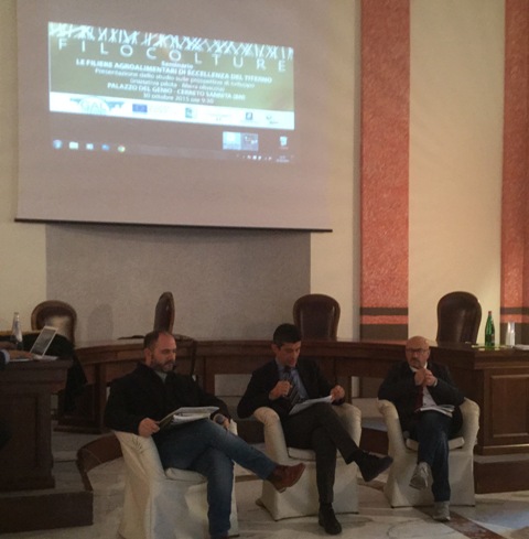All’intervento di Mendillo hanno fatto seguito quelli dei ricercatori-studiosi impegnati nella progettazione. In apertura Giuseppe Marotta (direttore del Dipartimento DEMM dell’Università del Sannio) il quale, dopo aver parlato dei tanti aspetti legati al processo che ha visto trasformare il “consumatore” in “cittadino”, si è soffermato sulla necessità di “avvicinare questi consumatori-cittadini al territorio e non solo i prodotti al mercato”, riuscendo così a disegnare nuovi scenari di economia responsabile. Della ricerca sul campo si è poi interessato Antonio Leone (Senior researcher del Centro Nazionale delle Ricerche – ISAFoM) che, illustrando i risultati ottenuti, ha parlato di ‘Filocolture’ come di un progetto altamente efficiente per la qualificazione del territorio, “obbiettivo che si centra – ha sintetizzato – solo se si conosce il territorio dal punto di vista conservativo, oltre che produttivo”. E’ stato poi il momento di Giancarlo Pepe (Esperto di tecnologie agroalimentari) che si è invece soffermato maggiormente sugli strumenti messi a disposizione dal progetto al fine di fronteggiare alcune criticità che presenta la filiera olio nel territorio del Titerno e della Valle Telesina, sia in merito alla valorizzazione delle varietà coltivate sia per quel che concerne gli aspetti qualitativi da preservare nell’ambito delle diverse fasi di coltivazione e trasformazione delle olive. Infine l’intervento di Gianluca Nardone (Docente dell’Università di Foggia), mirato a focalizzare l’attenzione sulla capacità di questo progetto “di saper coniugare il momento dello studio e dell’analisi con quello della sperimentazione, traducendosi in ipotesi di interventi concretamente funzionali al fine di creare margine di utilità per gli operatori della filiera”.