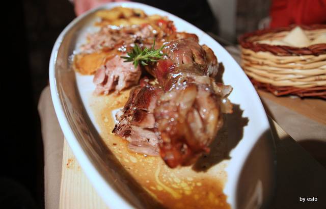 Allevato in Lucania è reso qui con le patate e il pomodorino al forno.