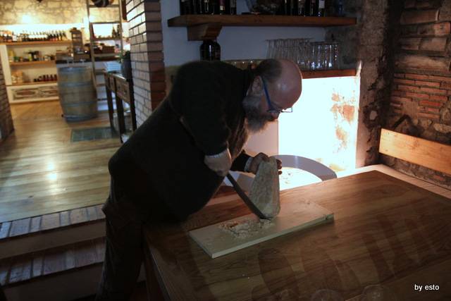 Parisi con il suo coltellaccio brevettato si catapulta sul caciocavallo podolico senza tempo preso in cantina.