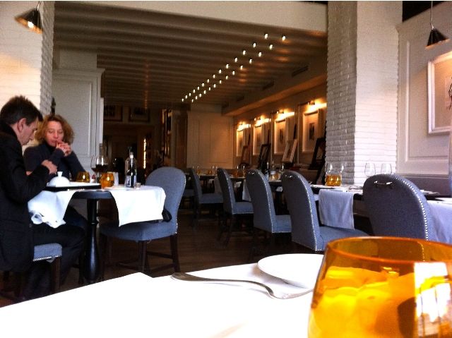 L’ingresso, pur signorile, è un po’ angusto e buio ma il corridoio “si apre” in una delle sale su cui fanno accomodare i clienti. Una strategica oscurità iniziale, forse studiata per rendere ancora più spettacolare la vista sul fiume dalla grande finestra. Solo dopo, però, scopro che nella sala accanto (vuota) la vista ( è ancora migliore perché il livello è rialzato di almeno mezzo metro e non ci sono balaustre o muretti che limitano la visione. C’è da chiedersi se questi tavoli siano riservati ai clienti dell’albergo…o per la cena. Mistero.