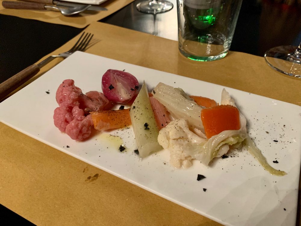 Come antipasto chiedo di assaggiare la loro Giardiniera: verdure croccanti e varie, in tagli grossi così da farci divertire col coltello, sapori distinti e acidità sul filo della perfezione. Un’ottima apertura di pasto.