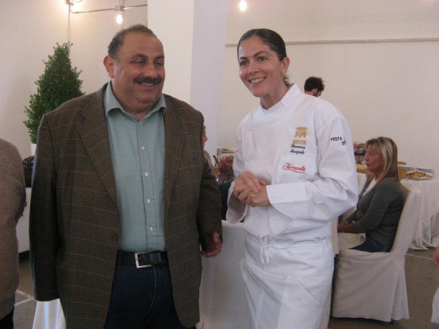 La chef Rosanna Marziale, fedelmente al suo stile di lavoro, ha preparato diversi piatti articolati tra la tradizione del territorio ed i ricordi di famiglia, quindi gli ottimi paccheri al ragù che in famiglia la domenica non devono mai mancare, lo stracotto di bufalo, per ricordare i numerosi allevamenti destinati alla produzione dell’ottima mozzarella aversana, e tra i dolci la polacca aversana fatta con pasta sfoglia, crema pasticciera ed amarene.