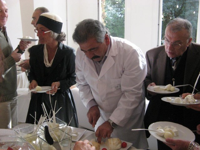 Al momento della colazione nella luminosa ed accogliente sala di Palazzo San Bartolomeo, sono stati offerti in degustazione alcuni prodotti d’eccellenza del territorio casertano: il conciato romano del caseificio Le Campestre, la mozzarella e latticini vari del caseificio Il Casolare di Alvignano, le birre artigianali del birrificio Karma, i vini di Villa Matilde.