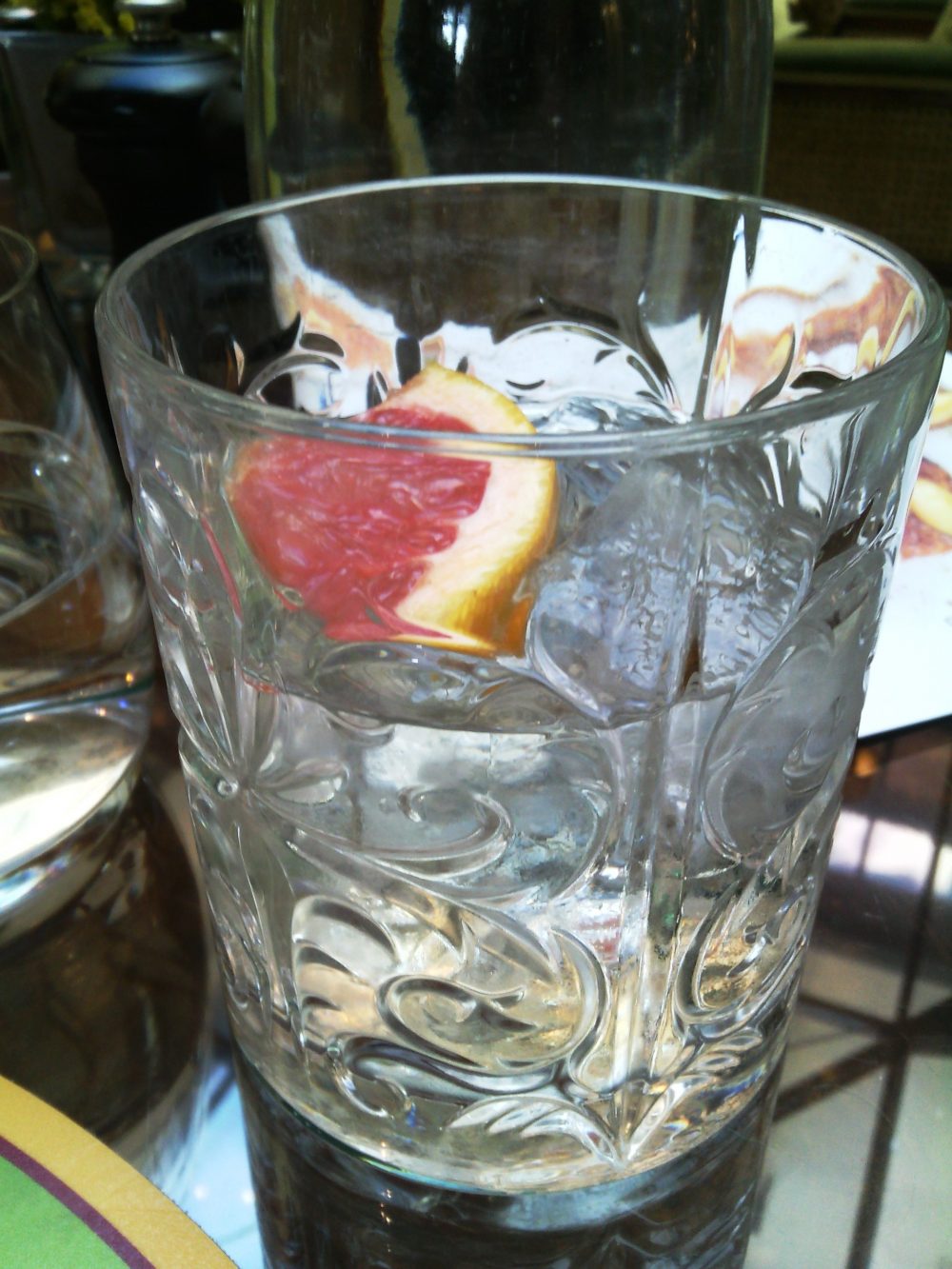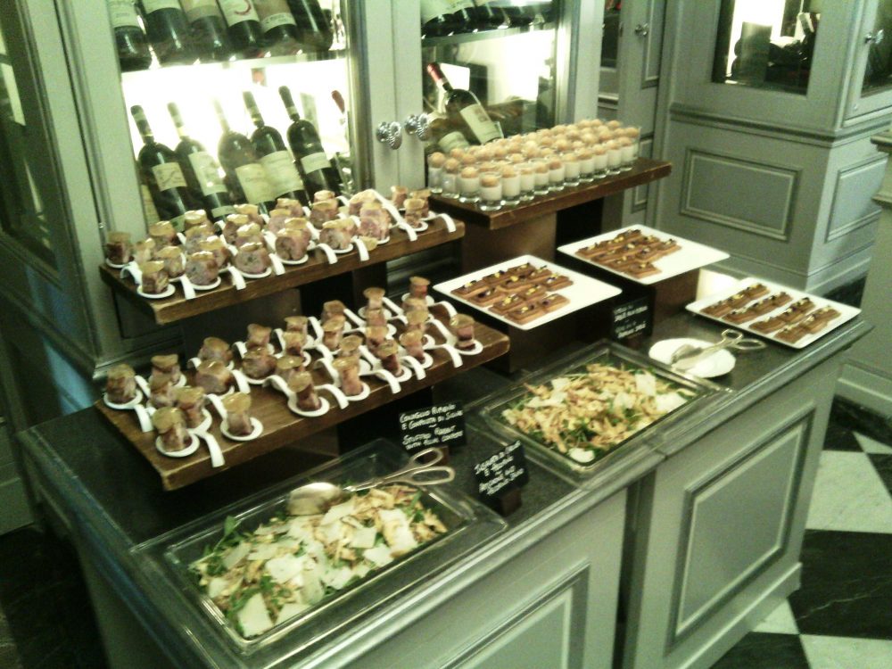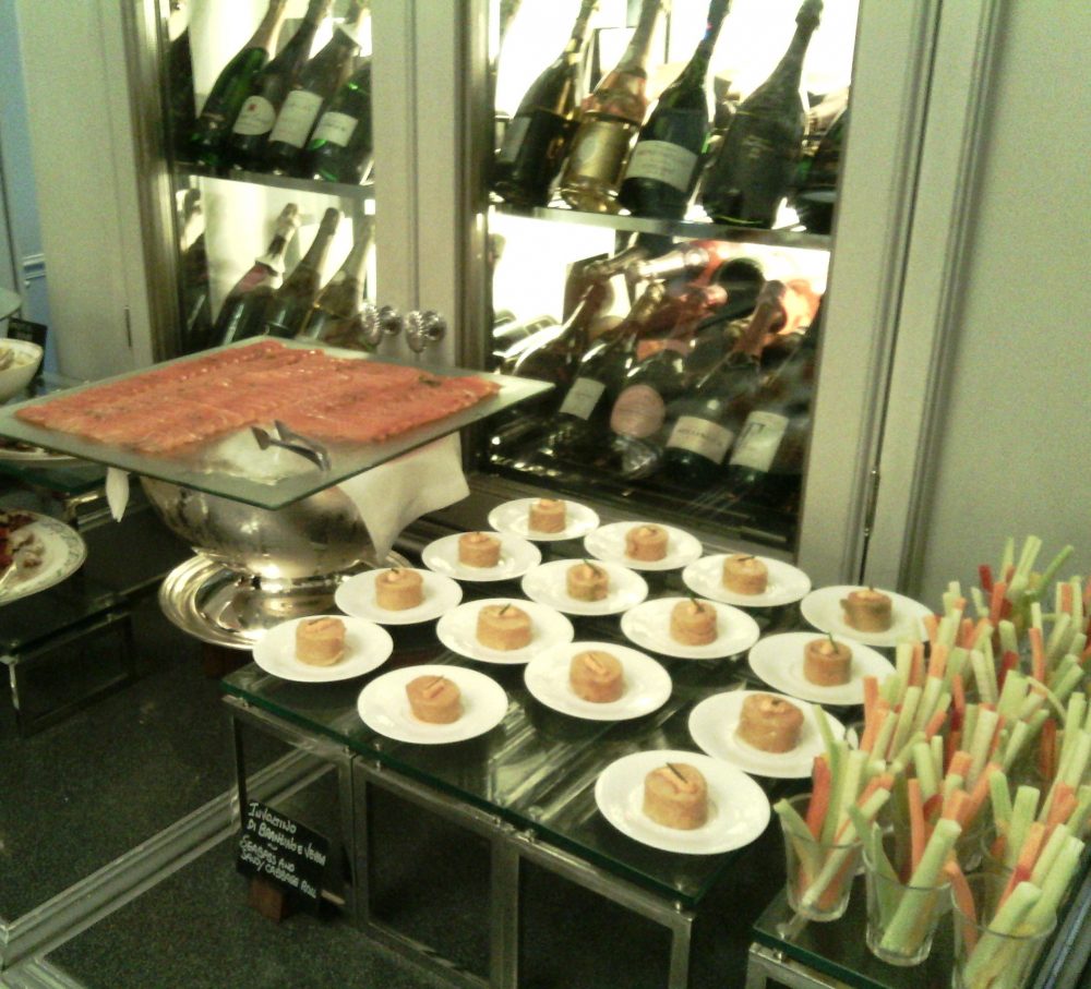 Dopo, un veloce aperitivo di benvenuto- a base di liquore di arancia e soda- vengo guidato per le stanze del buffet, mentre il responsabile di sala illustra pazientemente i vari atti del pasto.