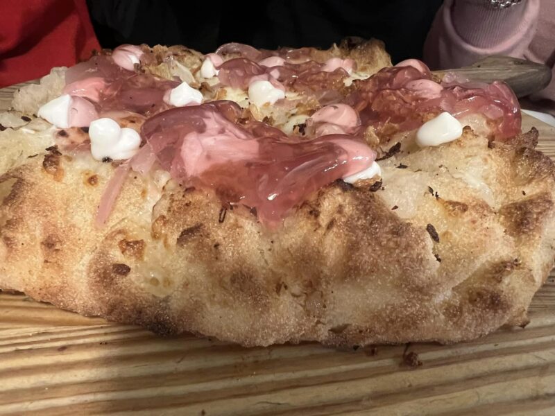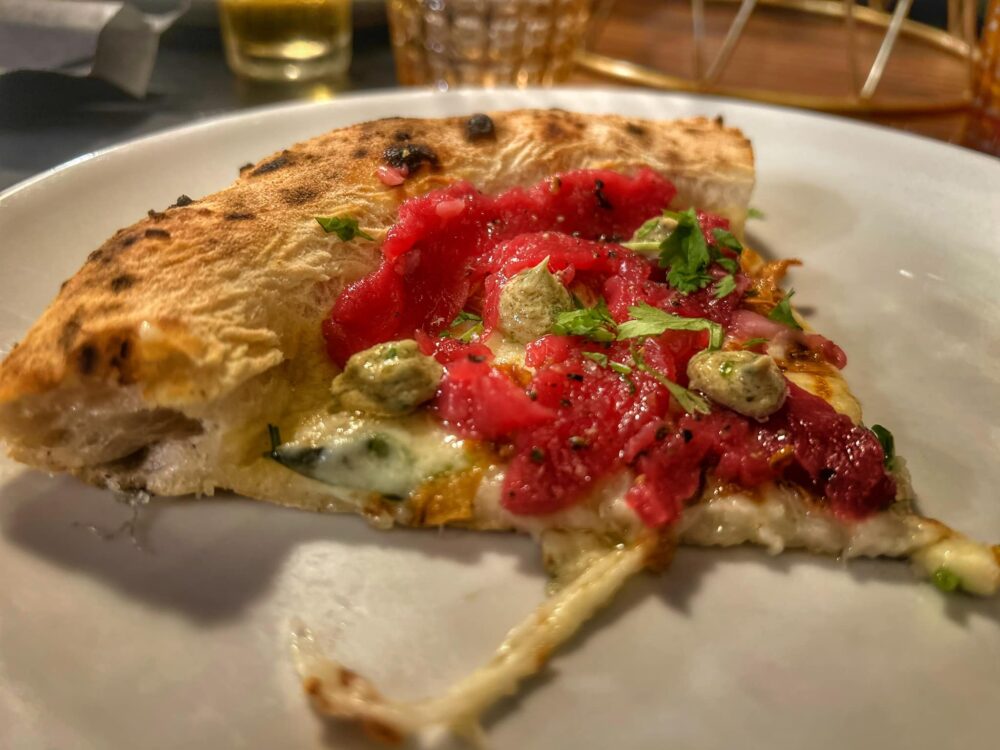 La seconda è che il 60% del mercato è fatto di Margherita e Marinara. Ed in questo Francesco Martucci che continua a spingere, l’impasto o meglio gli impasti, da quello più classico, alle tre cotture (al vapore, fritto e al forno) o quelli più fantasiosi, sono al top, frutto di una ricerca continua e del perfezionismo che diventa ossessione. Poi, ma in un secondo momento, ci sono i topping. La grazia e l’eleganza con cui Francesco riesce ad abbinare ingredienti e tecniche è sorprendente. Si legge la voglia chiara non di diventare un cuoco o di scimmiottare un cuoco, ma di essere un pizzaiolo che ama talmente tanto i suoi impasti che di volta in volta trova il modo migliore per valorizzarli. In questo piccolo, ma significativo e importante passaggio, per me, c’è tutto. Quando un pizzaiolo scimmiotta un cuoco diventa la caricatura di sè stesso. Prima di entrare nel dettaglio del nuovo menu, due altre considerazioni.