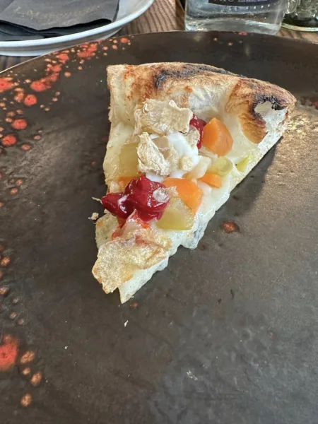 Conosco Martucci dai tempi di viale Kennedy ma devo dire che questa volta è riuscito a spiazzarmi nel piatto come, ripeto, solo con Padoan mi è capitato in vita mia. Lasciando stare la pizzeria, il servizio, la varietà di offerta, la cantina, le birre artigianali, in questo campo troviamo molti esempi simili se non anche superiori, ma se ci fermiamo al piatto in quanto tale, direi che nella loro navigazione professionale Martucci e Padoan sono gli unici veramente arrivati alle colonne d’Ercole che separano il mestiere di pizzaiolo da quello di cuoco. Della serie: non basta partecipare a congressi con chef stellati o farsi le foto con loro per diventare chef e autopremiarsi con i soldi degli sponsor. Ci vuole studio, rigore, disciplina, aggiornamento.