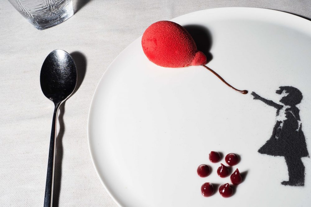 Sarebbe noioso elencare gli undici piatti più dolci e entrèe di una cavalcata sontuosa, dove non mancano i piatti “molto scenici” come il granchio o il prezioso dolce “Omaggio a Bansky”.