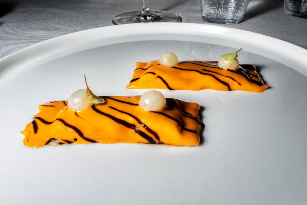 Franco Mare – Ravioli di scampo, nduja e aglio nero