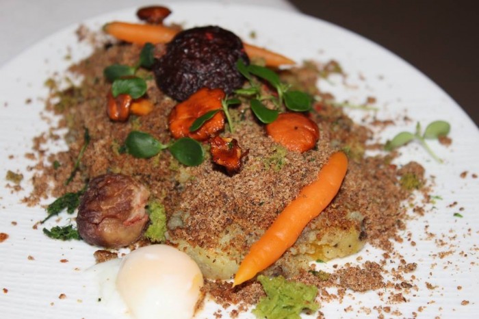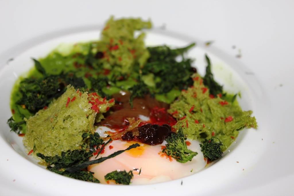 Toni amari non smorzati, esalatati dalla carnalità e dalla grassezza dell'uovo pochè, tecnica e pensiero per un piatto concettuale. Piatto con una marcia in più.