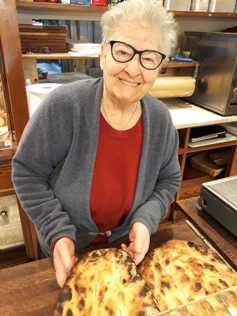 La pasta madre è la stessa del giorno d’apertura e viene rinfrescata due volte al giorno: il pane, realizzato con farina di tipo 0, cuoce a 280° per finire, dopo 1 ora e 20 a 180°/190°. il forno è sempre acceso anche per la produzione dei dolci tipici del territorio, come le ciambelle al vino, i biscotti al latte, biscotti ai cereali, con le nocciole, con la glassa, con la marmellata, i brutti ma buoni, i biscotti con cioccolato fondente e sambuca oppure quelli al pan di spagna con cannella, arancio e mandorle del periodo pasquale.