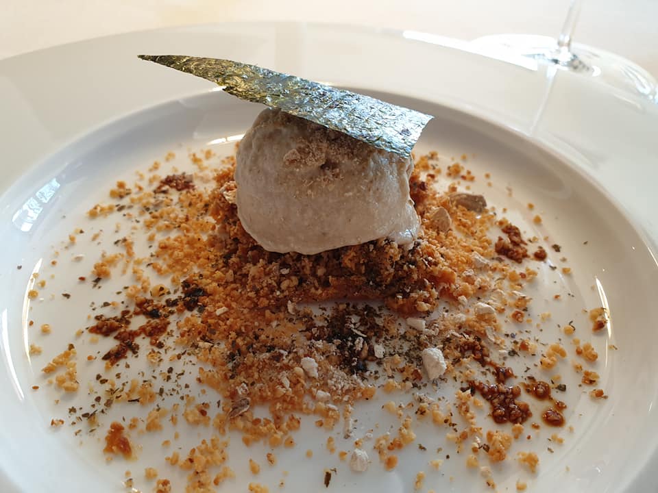 Oltre al riso e ai risotti c’è di più. Prima di tutto c’è una cucina in forte crescita, con tanti spunti tecnici come la meravigliosa triglia in oriente o il piccione in due servizi (nelle foto troverete solo il secondo servizio del piccione), veramente ben fatto. Il secondo spunto è il raggiungimento di una maturità notevole. Quest’anno festeggiano 10 anni di stella Michelin, che per dei ragazzi così giovani, (meno di quarante anni Christian e trenta Manuel) mi sembra un risultato notevole. Terzo ed ultimo la pasticceria. Dividerei la pasticceria in due grandi filoni, quella classica, la scienza esatta, frutto di precisione e metodo e la pasticceria nella ristorazione d’autore. La divisione la faccio perchè in ristoranti dove spesso si sceglie un menù degustazione o comunque si mangiano più portate, se la pasticceria è troppo “pesante” rischia di rovinare pranzo o cena. Amo mangiare i dolci classici lontano dai pasti, quando l’orgia di dolcezza zuccherina non soddisfa un bisogno primario. Invece al ristorante preferisco dolci con poco zucchero, che siano belli e sappiano incuriosire. Questo è il ruolo di un pastry chef, rispetto a quello di un pasticciere tradizionale.
