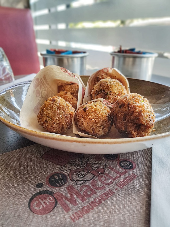 Personalmente, le ho assaggiate in tutte e tre le varianti e devo dire che, pur preferendo quella alla genovese, l’impanatura di pane panko, arricchita dalla spolverata di grana per il ragù, cacao per la genovese e salsina alla paprika per salsiccia e friarielli, le ha rese particolarmente piacevoli al gusto. Iniziare la sosta da Che Macello preferendo questi bocconcini rispetto alle classiche patatine è una scelta sfiziosa.