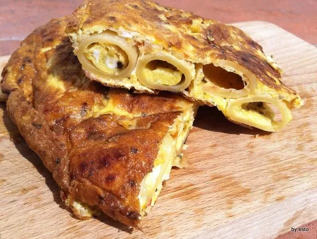 Unisce insieme il piacere della frittata di cipolla e della frittata di maccheroni.