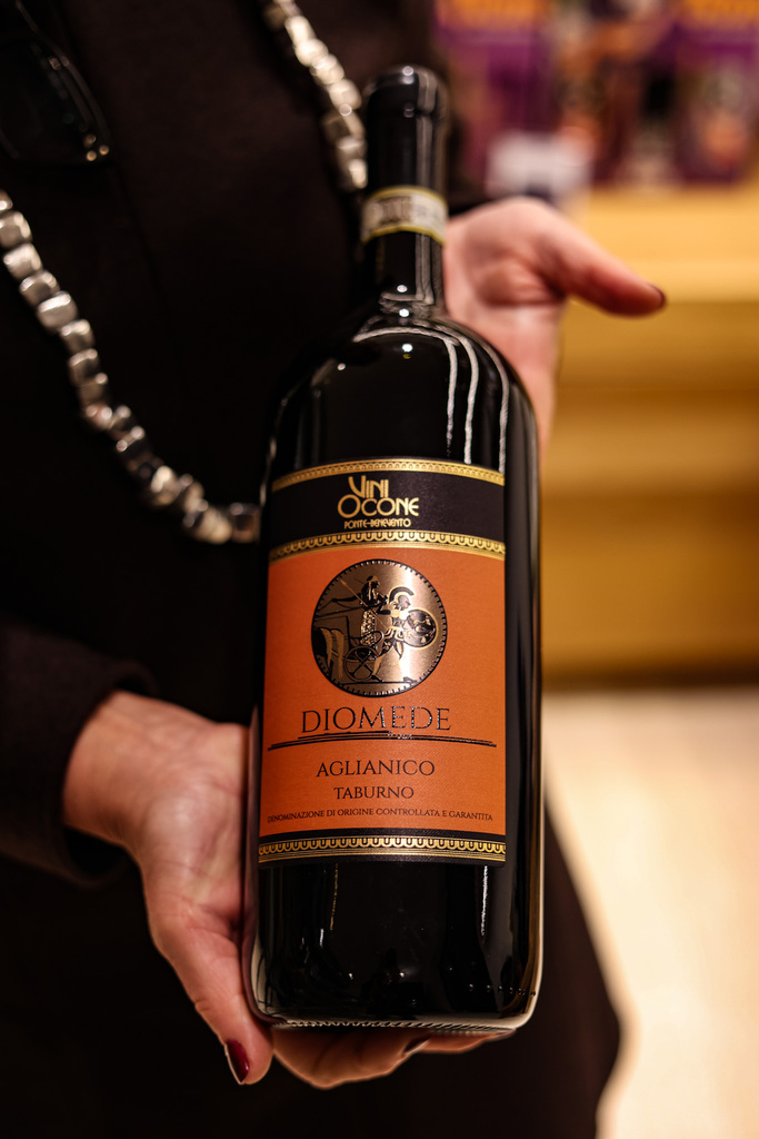 La linea storica affonda invece nella mitologia e nella storia di Benevento. Diomede è un Aglianico del Taburno DOCG vinificato in modo tradizionale, con affinamento in botte grande. Il nome richiama l’eroe greco che, secondo la leggenda, fondò Benevento dopo la guerra di Troia. Accanto a lui c’è Calidonio, che prende il nome dal celebre cinghiale della mitologia greca, simbolo ancora oggi presente nello stemma della città. Le etichette, ispirate a monete antiche, rafforzano questo legame profondo tra vino, mito e territorio.