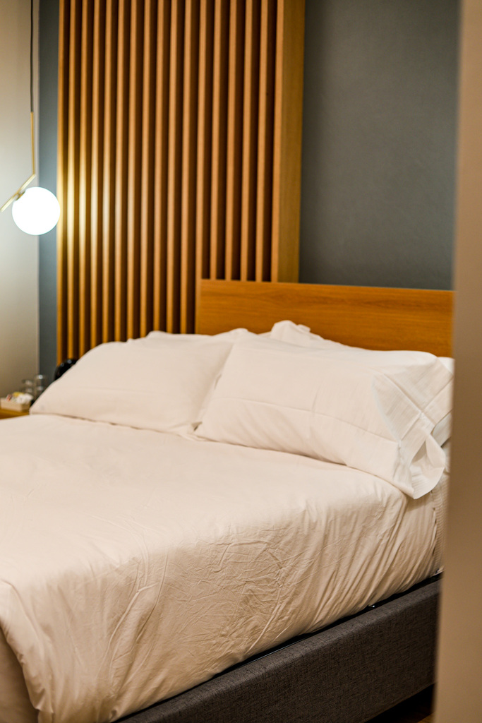 Io ci ho trascorso ventiquattro ore, insieme a un’amica. Arrivavamo entrambe da settimane frenetiche, con il bisogno reale di staccare la spina, di ritrovare silenzio e spazio. L’inverno, qui, non toglie nulla: aggiunge. I filari spogli hanno un fascino austero, la nebbia leggera sfiora la terra, una pioggia sottile accompagna i passi. In mezzo a questo paesaggio emerge una struttura moderna, bianca, essenziale, che non invade ma dialoga con ciò che la circonda.