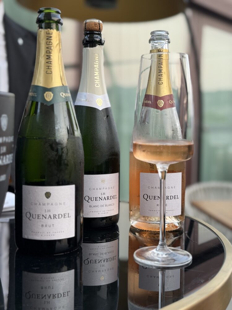 La musica dal vivo ha accompagnato ogni passaggio con eleganza discreta, tra una risata e un brindisi. Le tre etichette di Champagne J.H. Quenardel hanno aggiunto charme e profondità alla serata, il Rosé, profondo e sensuale, il Brut, equilibrato e versatile, e il Blanc de Blancs, il mio preferito, brillante, verticale, perfetto con le fritture leggere.