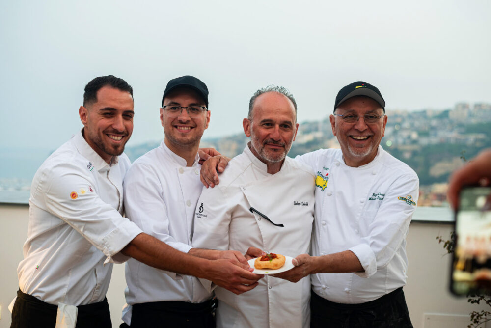 Enzo Coccia, punto di riferimento assoluto per la pizza napoletana nel mondo, ha partecipato a questo appuntamento accompagnato dai figli Andrea e Marco, giovani professionisti preparati, attenti, capaci di trasmettere un senso di misura e calore in ogni gesto, con il loro sorriso gentile e una visione condivisa che ha dato ritmo e armonia alla serata. Enzo li ha seguiti con discrezione e affetto, e noi tutti abbiamo sentito il calore di un invito vero, non formale, rivolto ad amici, appassionati, curiosi e turisti, ognuno accolto con la stessa gentilezza e attenzione.