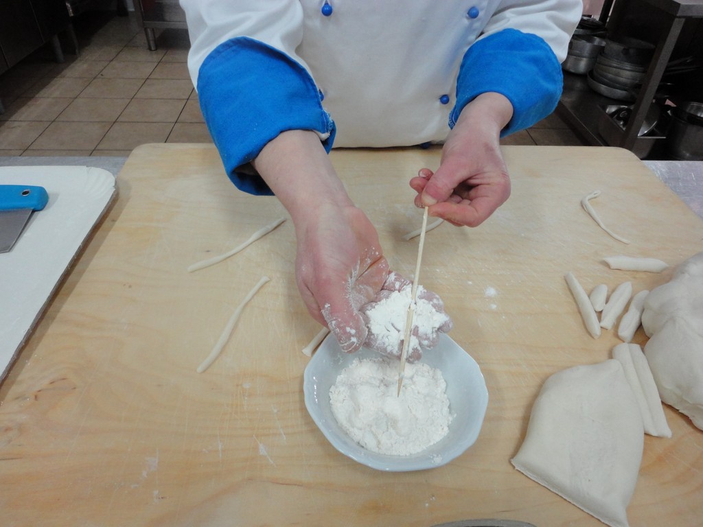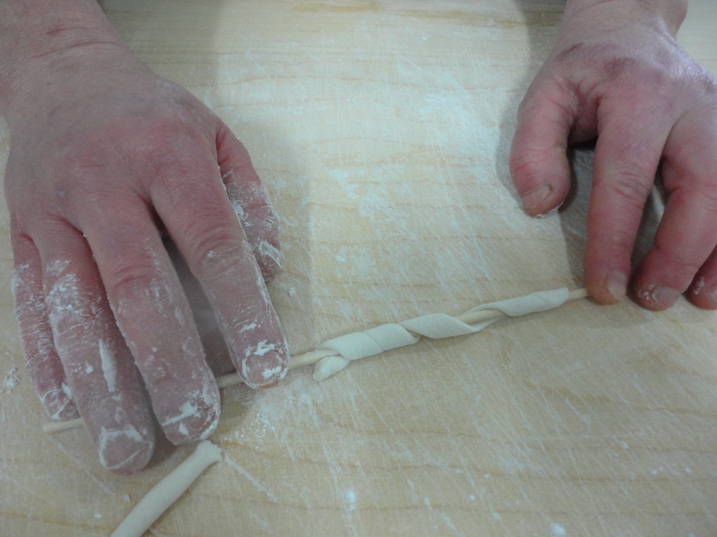 Si inizia ad arrotolare la pasta attorno al bastoncino
