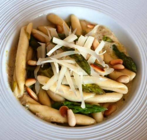 Fusilli con asparagi e provolone del monaco su crema di bufala al pesto di basilico e pinoli | Contest Le Strade della Mozzarella