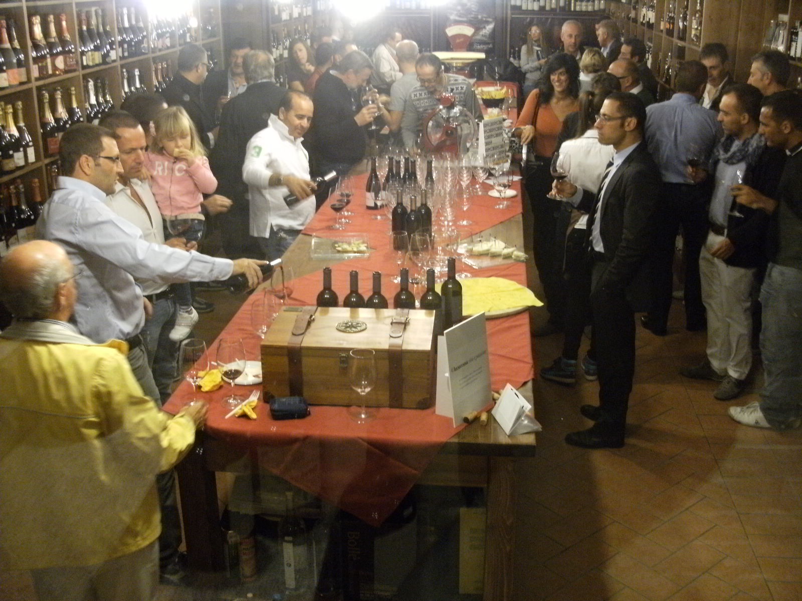 “Spalti gremiti in ogni ordine di posto”, avrebbe commentato in una sua telecronaca di calcio il compianto Nando Martellini. E sì, perché veramente l’affluenza dei convenuti è stata notevole, tanto da occupare tutto il pur vasto spazio disponibile dell’enoteca. Arbitri i due proprietari ed assistente di linea l’esperto gourmet Giorgio Naldi, dedito alla preparazione di squisite chicche culinarie, che hanno deliziato il pubblico presente.