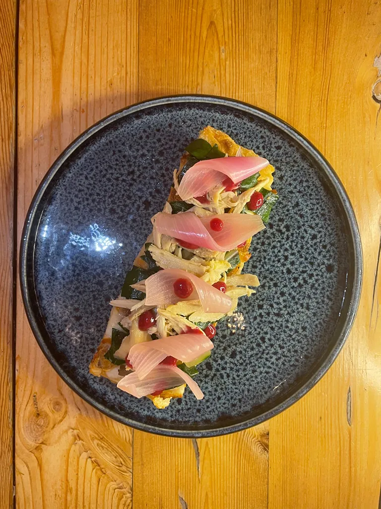 Davide Mogno di Surlì Più Pizzeria a Mirano (VE), partecipa a Fior… di Teglia 2023, iniziativa siglata 50 Top Pizza e Latteria Sorrentina, con Gallina domenicale.