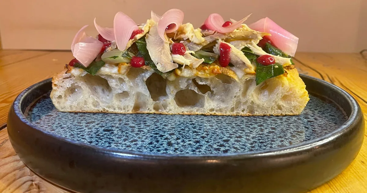 Davide Mogno di Surlì Più Pizzeria a Mirano (VE), partecipa a Fior… di Teglia 2023, iniziativa siglata 50 Top Pizza e Latteria Sorrentina, con Gallina domenicale.