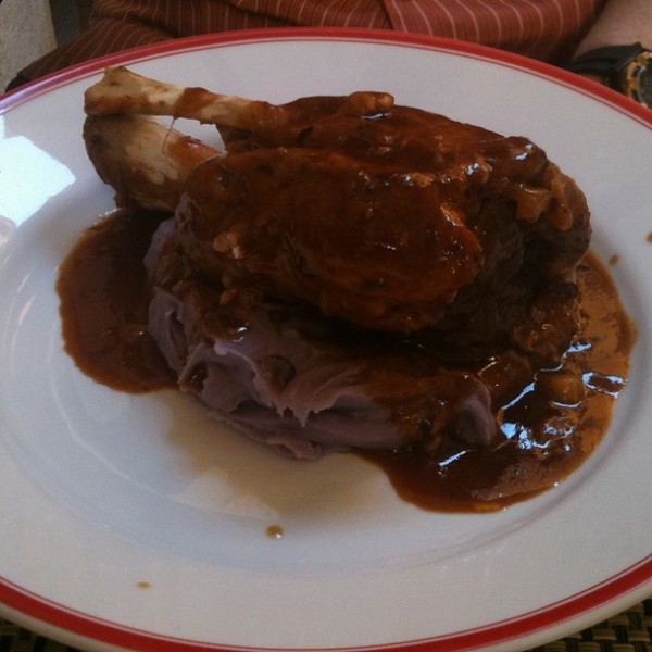 Ed è proprio così! Per iniziare vi consiglio il loro vassoio di salumi (anche se l’affettatrice aveva scaldato un po’ troppo un buon prosciutto crudo) per poi passare alla pasta e fagioli, o alle tagliatelle con un sugo che cambia tutti i giorni (fermo restando il ragù), o al risotto all’amarone, o ai ravioli di cipolla “ramata di Montoro” con fonduta di formaggio d’alpeggio. Come vedete la cucina è di chiara impronta casalingo-veneta e (questo non lo potete vedere se non ci andate) le porzioni sono proprio da famiglia veneta, “abondanti cio’”! Infatti se come secondo prenderete lo stinco di maiale vi arriverà un intero stinco e se andrete sulla Pastissada de caval con polenta di Marano non dico vi arriverà un cavallo intero ma poco ci manca.