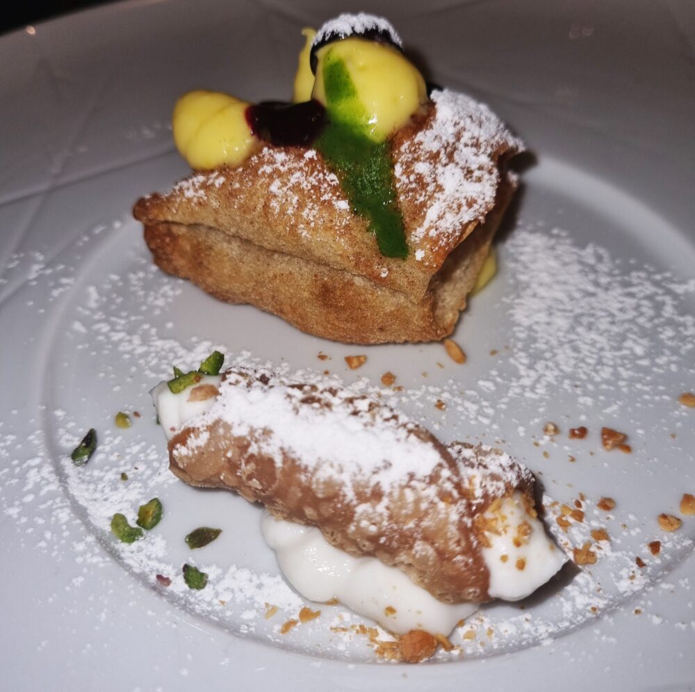 La degustazione si chiude in dolcezza con una montanarina mirtilli e cannella accompagnata da un mini-cannolo di ricotta che ho preferito abbinare ad un Amaro dell’Erborista prodotto da Varnelli.