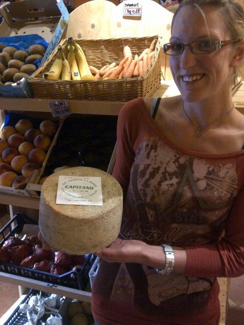 Scelta coraggiosa al giorno d’oggi. E qui, miracolo, in magazzino spunta una forma ancora intera forma di Chersogno. L’ultima della stagione, assicurano. Tre chili di peso, latte vaccino al 100%, venti euro al chilo un bello scalzo da quindici centimetri: è nostra!