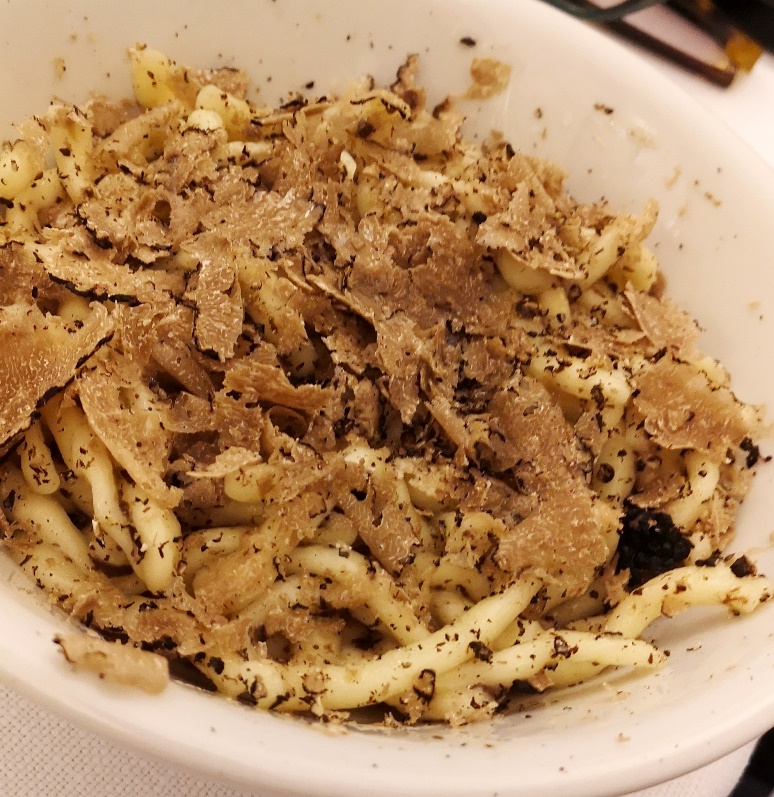 Il buon feeling viene immediatamente rafforzato da degli antipasti semplici ma sostanziosi, come la bruschetta con la purea di fave e finocchietto o quella classica col pomodoro. Fin dall’inizio si capisce che il locale e di cucina tipica umbra, ma il livello qualitativo è sicuramente alto. La conferma sono gli umbricelli (una specie di pici più corti e di forma irregolare) con il tartufo nero e soprattutto il piatto che fa da cartina tornasole della qualità in ogni locale del mondo: le polpette.