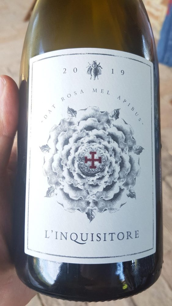 Umbria Bianco IGT “L’Inquisitore” 2019 (100% sauvignon blanc): proveniente da una vecchia vigna di Sauvignon Blanc, la quale ha dato vita ad un’edizione speciale di 1300 bottiglie nel 2016, l’Inquisitore è un vino che è nato per spazzare via alcuni pregiudizi e alcune polemiche sul sauvignon blanc tanto che, come si vede nella retroetichetta, tutti noi, nella morale di Enzo Barbi, siamo inquisitori visto che giudichiamo spesso e volentieri un vino senza nemmeno assaggiarlo. Chi identifica negativamente il sauvignon blanc solo con alte percezioni pirazine e tioli sarà notevolmente sorpreso da questo sauvignon blanc umbro che gode, anche grazie all’annata decisamente equilibrata, di eleganza e mineralità senza mai strabordare in connotazioni gusto-olfattive naif che, per anni, ci hanno tutte trasformato in (santi) inquisitori.