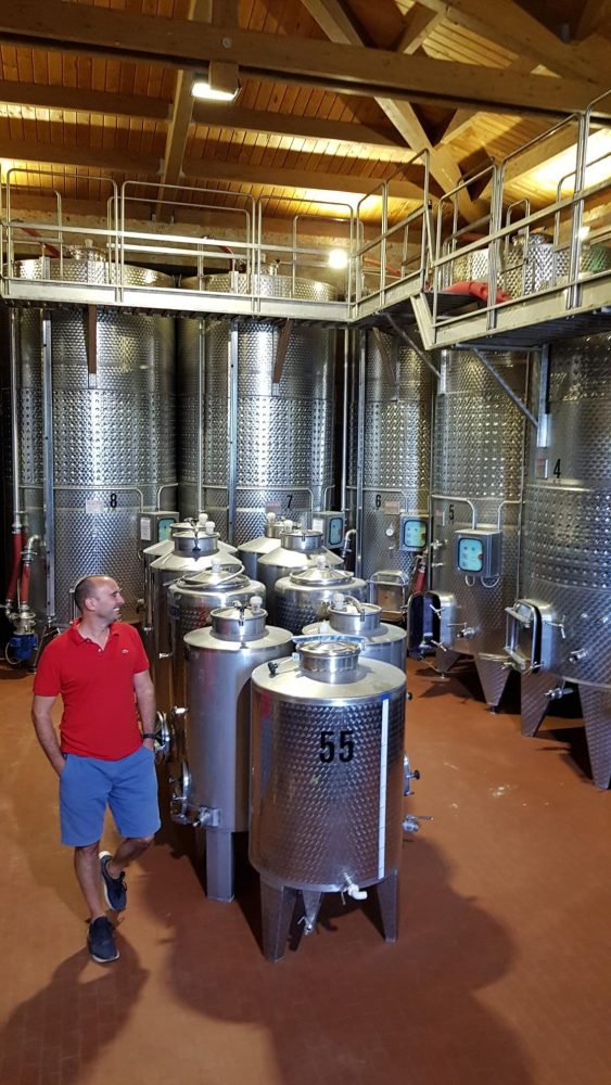 Girando per l’azienda mi accorgo che, rispetto a sette anni fa, la cantina di vinificazione è rimasta più o meno la stessa ovvero popolata da vasche di fermentazione, tutte in acciaio, destinate ognuna ad uno specifico vigneto. L’unica novità vera in questo contesto è che, rispetto alla ultima visita, ora la supervisione enologica è seguita Riccardo Cotarella.