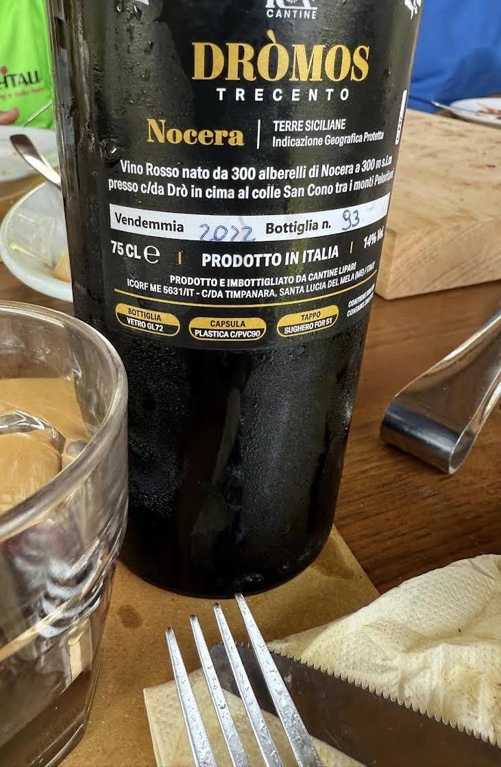 Ce lo porta un amico, il mitico Marco Contursi, di ritorno dai suoi giri in Sicilia e ne godiamo durante un pranzo estivo cilentano a base di capretto, compreso il soffritto di interiora. Lo produce l’azienda Cantine Lipari a Santa Lucia del Mela in provincia di Messina fondata da Francesco Lipari nel 2014 in Contrada Timpanara, una collina a circa 350 metri che annuncia i Monti Peloritani guardando Capo Milazzo e le Eolie. Appena tre ettari su suolo calcareo e argilloso dove si allevano tre vitigni a bacca rossa (Nero d’Avola, Nocera e Nerello Cappuccio) e tre a bacca bianca (Grillo, Catarratto e Inzolia). Una adesione convinta al territorio e alle pratiche ambientali non invasive.