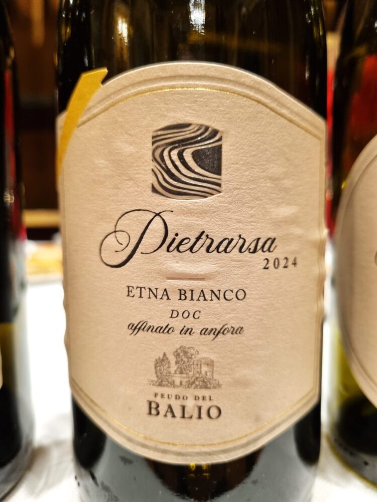 L’Etna Bianco “Pietrarsa” 2024 è il volto elegante del vulcano: un Carricante in purezza che profuma di agrumi e fiori bianchi, con una vena minerale che ricorda la pietra bagnata e la cenere leggera dopo la pioggia. Al palato è teso, vibrante, scandito da una freschezza che non cede mai alla morbidezza. È un vino che parla sottovoce, ma lascia un’eco lunga e salina, come una brezza che risale dai crateri.