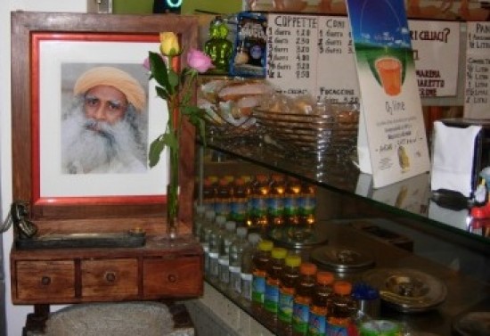 Differenze che si percepiscono sin da fuori: Avalon si presenta come un normale negozio di gelati, entrando però l’occhio ti cade su una specie di altarino con la foto di un signore, chiaramente indiano. Pensi ad una stravaganza e vai avanti. Invece stravaganza non è: quel signore è il maestro yoga di Paolo ed ogni gelato (pardon!) , prima di andare sul bancone viene benedetto dal suono di una campana tibetana.