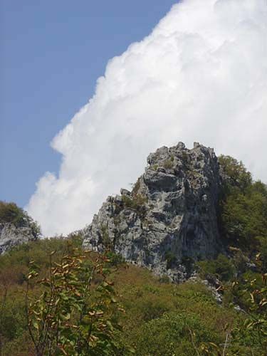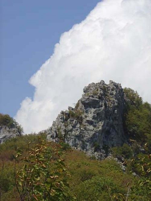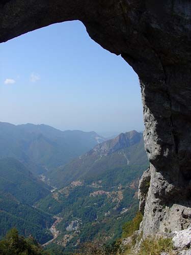 (Una breve parentesi: L’arco e’ imponente, con un diametro apparente di una cinquantina di metri, e sebbene sia attraversabile ho preferito semplicemente ammirarlo. La leggenda vuole che la montagna sia stata trafitta nel corso di uno scontro tra diavoli ed eremiti, o forse tra diavoli e la Madonna. Guardando l’arco, la leggenda non sembra poi tanto impossibile.)