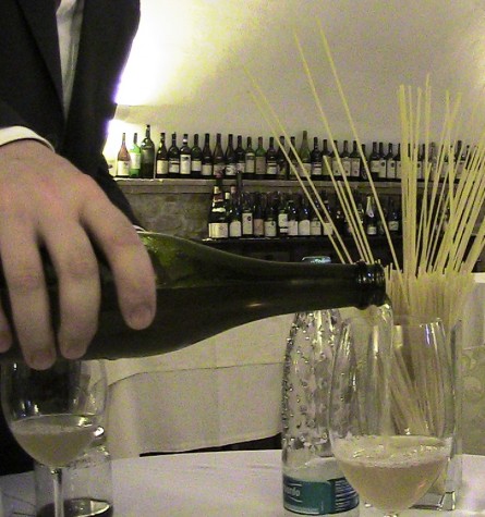 Prendete il qui presente, mettetelo in una calda giornata d’estate, aggiungeteci un bravo e giovane produttore di Verdicchio (Andrea Felici, i nostri lettori lo conoscono) mescolate il tutto nella fresca sala di un ristorante (Il Marchese del Grillo, non so se i nostri lettori lo conoscono ma prossimamente lo conosceranno) e cosa si ottiene? Un produttore di idromiele (e miele) di altissimo livello.