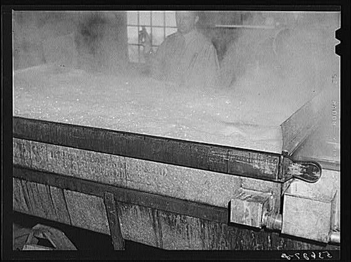 L’aria aveva quella tinta bluastra che assume al crepuscolo quando è nuvoloso ed il terreno era completamente bianco anche quando arrivammo al sugaring shed, la baracca dello zuccheraggio: una capanna di legno con un rialzo sul tetto dotato di fessure da cui uscivano nuvole di vapore. Mi ricordo vagamente del bagliore del fuoco sotto l’evaporatore e della linfa bollente.