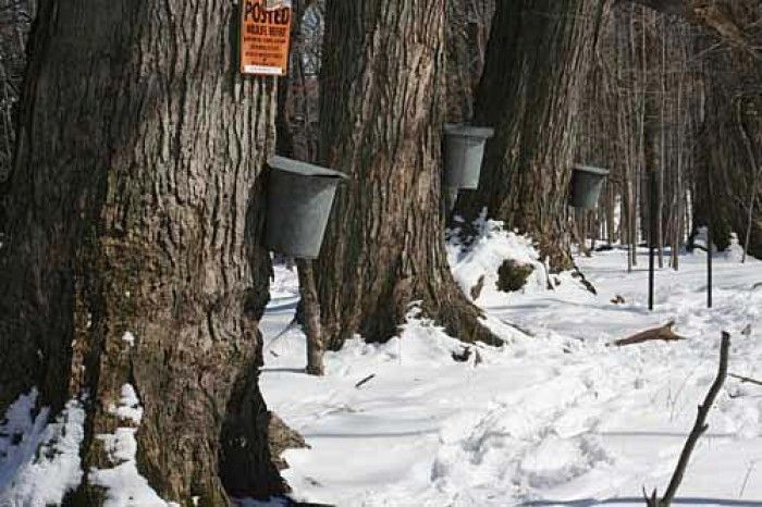 Ci mettemmo giacche e stivali, e in men che non si dica stavamo percorrendo una strada fangosa e innevata, mentre mi spiegava che il sugaring, lo zuccheraggio, era una attività stagionale limitata agli inizi della primavera, quando le temperature superavano lo zero di giorno per poi scendere durante la notte, con la linfa che scorreva abbondante negli aceri da zucchero.
