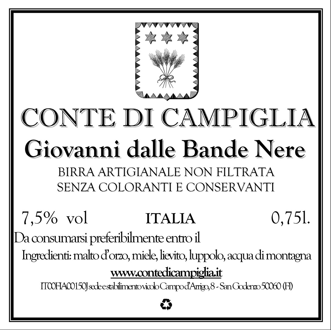 Servita alla temperatura giusta (intorno ai 10°) e servita in modo acconcio, in modo da valorizzarne la rassicurante cremosità, libera al naso tutti i profumi dei lieviti, sentori di bosco bagnato, liquirizia che si agglutinano e poi in gran parte tornano, persistenti, in bocca, dove la “Giovanni dalle Bande Nere” esprime la sua natura robusta, il suo nerbo tutto d’un pezzo, il vigore dei suoi oltre 7° alcolici e un gusto secco, severo, fumoso, con un bel corpo pieno che lascia la bocca pulita e la voglia di bere ancora.