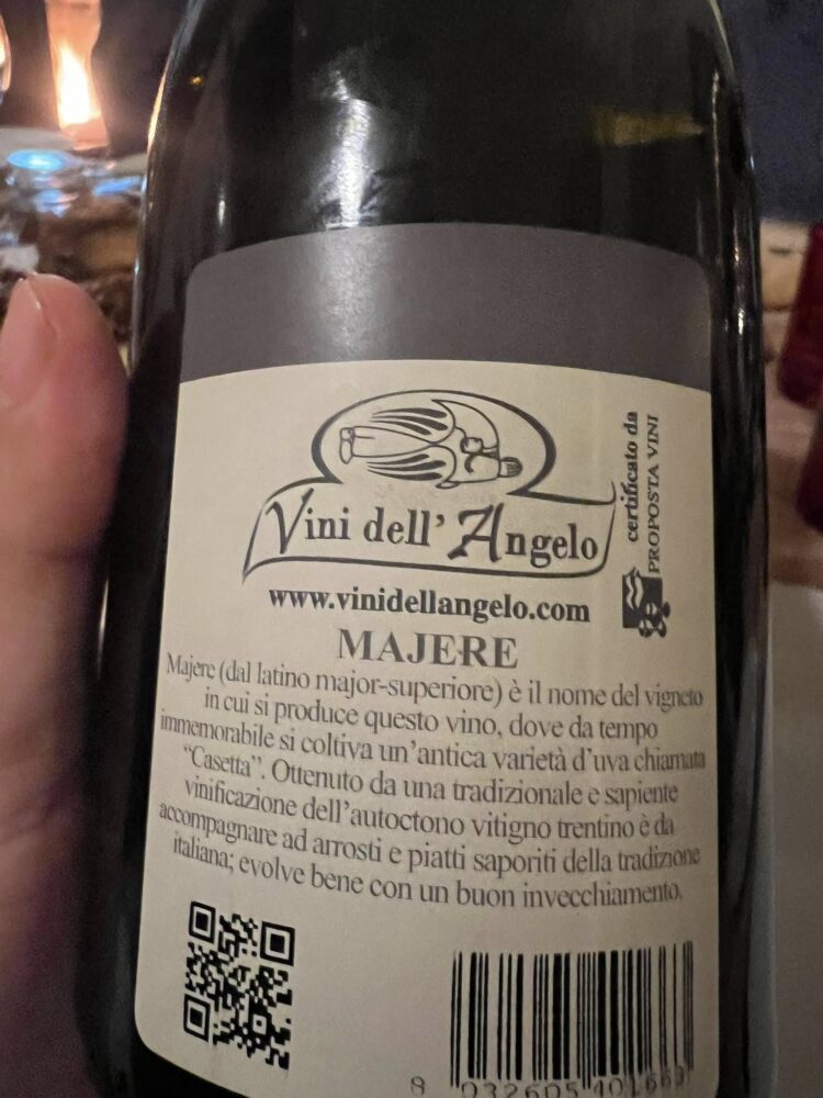 Apriamo questa bottiglia, il vitigno si chiama casetta ed è una varietàò tipica delle zone collinari della Val Lagarina ad Ala in Trentino e a Dolcé in provincia di Verona.