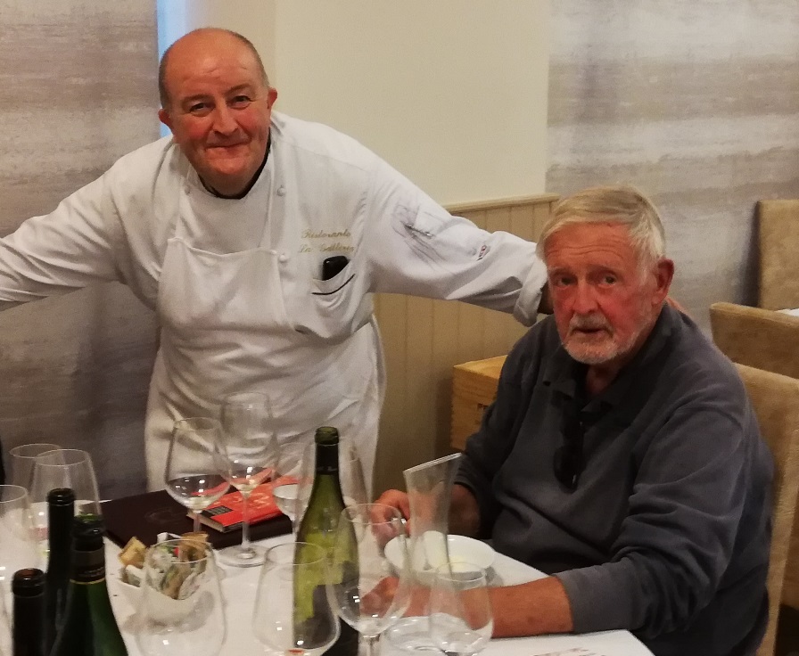 Questo ristorante non solo è famoso per la sua cucina di pesce assolutamente gaudente e solare, ma è un locale dove io sono di casa e dove Burton si sente a casa. Quindi stabiliamo la data (3 dicembre, a pranzo) e Burton invita anche un personaggio che tutti oggi vorrebbero a tavola, quel Francesco Martini di Cigala che assieme ai fratelli firma i vini di San Giusto a Rentennano, compreso il Chianti Classico 2016 valutato da Wine Spectator come terzo miglior vino al mondo.