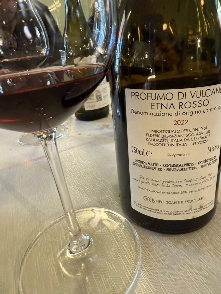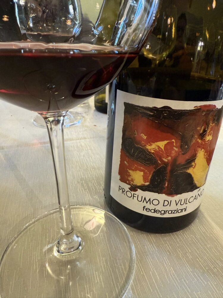Cosa ci stupisce di questo vino? Anzitutto la leggerezza assoluta del naso e del sorso, poi l’energia misteriosa che non possiamo ridurre usando il termine freschezza, una beva tumultuosa, cangiante, la suggestione del vulcano e del nome stesso del vino ci fa immaginare la lava che vediamo in tv o il pennacchio che si scorge dall’areo quando voliamo da vulcano a vulcano, dal Vesuvio all’Etna. La nota fumé è indiscutibile, la sensazione di amaro e al tempo stesso di frutta rossa croccante si alternano sino ad un finale lungo, lunghissimo che resta per molto tempo e che sollecita un nuovo sorso appagante.