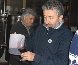 Durante la visita abbiamo avuto l’opportunità di degustare, in compagnia dell’enologo Gianfranco Cordero (vedi foto), diversi vini prelevati dalle vasche, alcuni ancora in fase embrionale o d’affinamento, mentre altri già pronti per l’imbottigliamento. Paragonando quest’ultimi, con quelli degustati (bevuti in realtà) poche ore prima, durante il pranzo, abbiamo colto diverse sfumature organolettiche, con, i vini prelevati dalle vasche, che presentavano una più spiccata nota balsamica, rispetto a quelli in bottiglia. Si tratta di impressioni influenzate anche dalla diversa temperatura dei vini, ma la cosa ci è parsa assai curiosa.