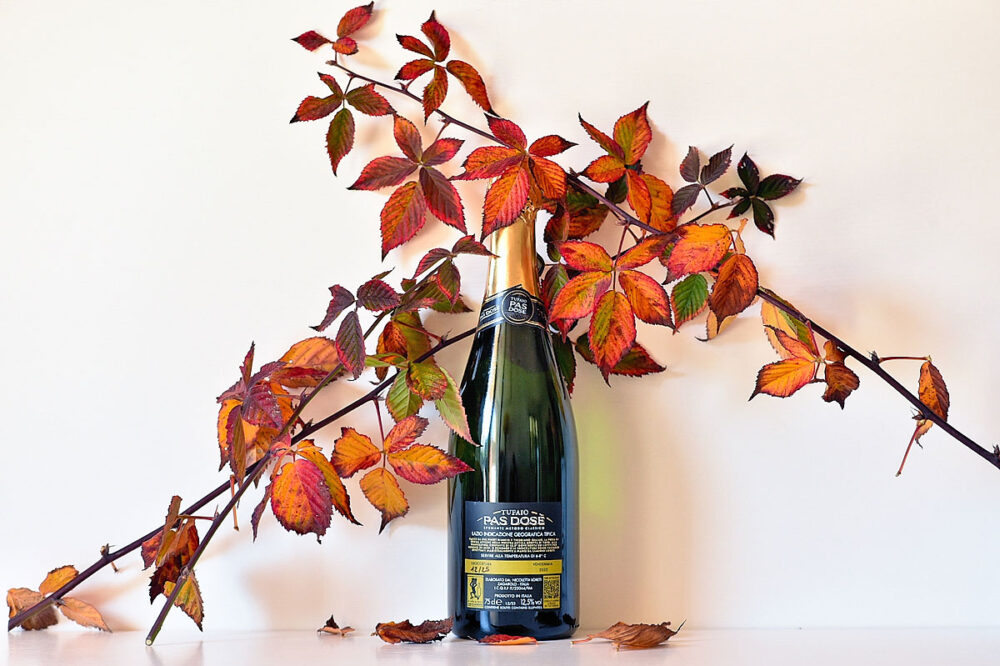 Oggi la scelta è andata su pinot bianco e trebbiano giallo, quest’ultima sta dando risultati davvero eccellenti, non è escluso che nei prossimi anni, quando le viti avranno raggiunto piena maturità, che il Tufaio Brut Pas Dosé possa essere prodotto solo con il trebbiano giallo. L’annata 2022 ha goduto di una sosta sui lieviti di oltre 24 mesi, la sboccatura risale a poche settimane fa.