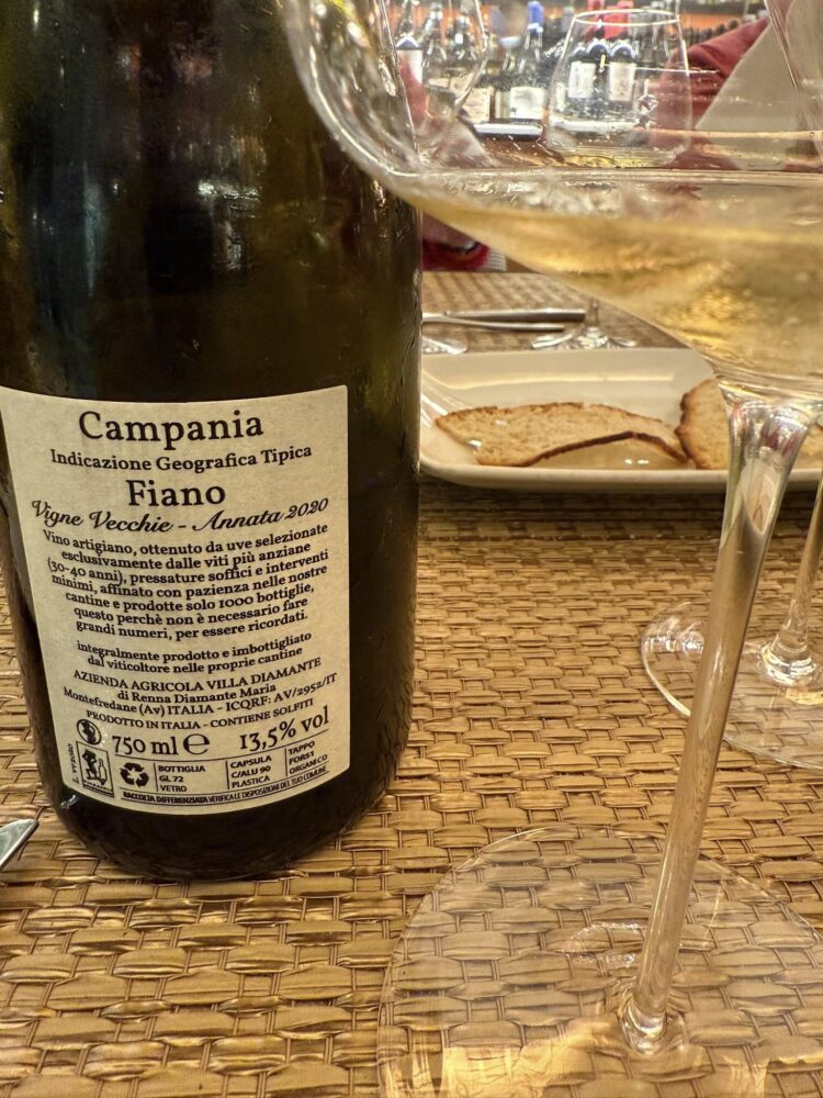 Ecco, il complimento che mi sento di fare alla figlia Serena e alla mamma Diamante è che questo Fiano sembra fatto da lui. A partire dal fatto che non è docg, tanto per citare la polemica da cui nacque il Clos d’Haut che ha anticipato il gusto dei vini naturali degli ultimi anni senza tradire la purezza del Fiano.