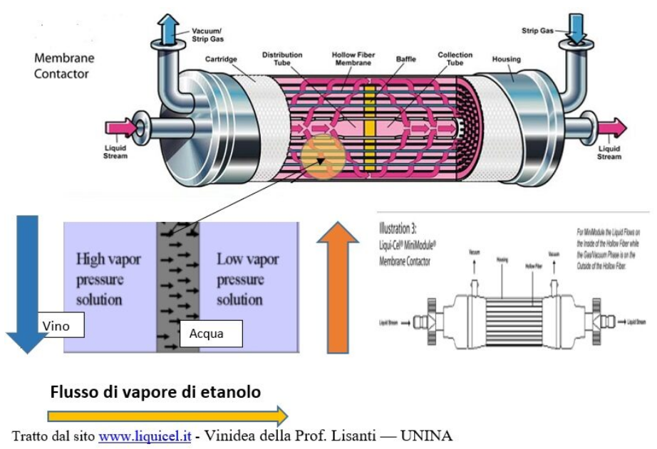 Il sistema permette di separare l’alcol dal resto del prodotto attraverso il passaggio in specifiche membrane
