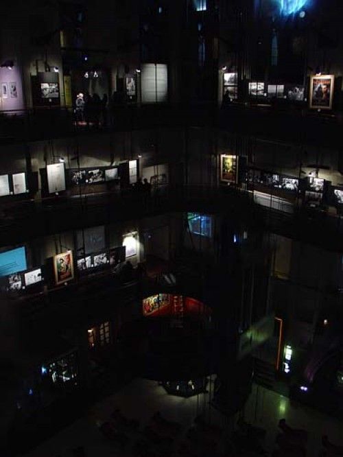 Purtroppo la combinazione dei panorami e le mostre itineranti si rivelò insufficiente per attirare visitatori. E allora gli assessori preposti ebbero l’idea geniale di trasformare la Mole in un Museo del Cinema: L’entrata porta direttamente all’ascensore, dove dopo un periodo d’attesa (mezz’ora nel nostro caso) si entra fra le mura di cristallo; consiglio a chi non soffre veramente di vertigini di addossarsi alla parete perchè la vista durante la risalita è affascinante.