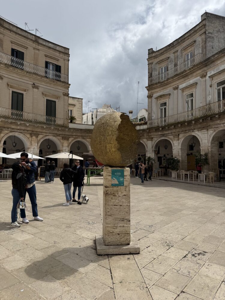 Quando usciamo, la luce di Martina Franca è ancora calda, morbida sulle pietre. I vicoli ci portano incontro a bronzi che sembrano alberi, mani che si tendono, corpi che si intrecciano: sono le sculture monumentali di Andrea Roggi, parte dell’esposizione Radici di Umanità. Opere che non decorano la città, ma la abitano, in dialogo continuo con le chiese, i balconi fioriti, i silenzi.