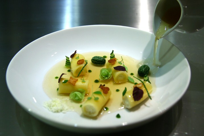 Gazpacho trasparente di corbarino, pasta di Gragnano, mousse di mozzarella di bufala campana | Contest Le Strade della Mozzarella
